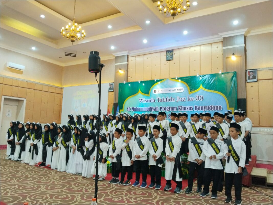 BOYOLALI, MENARA62.COM — Sebanyak 85 siswa SD Muhammadiyah Program Khusus Banyudono resmi diwisuda dalam prosesi Tahfiz Juz 30 yang berlangsung khidmat di Hotel Azhima Colomadu, Sabtu (4/4/2026).