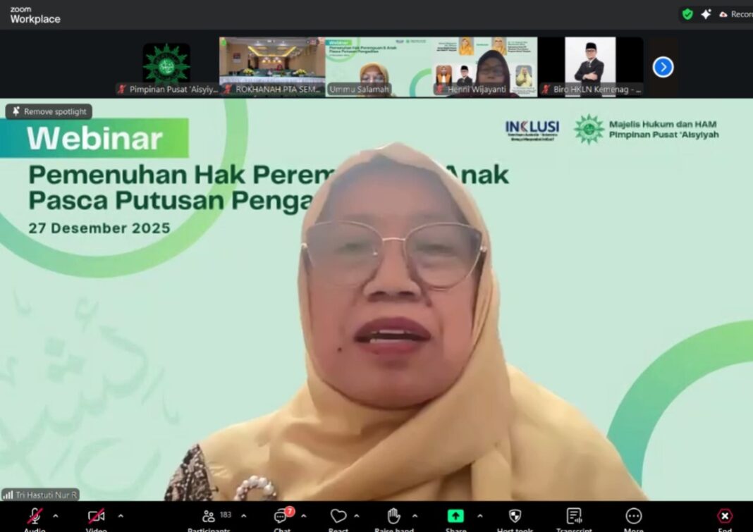 YOGYAKARTA, MENARA62.COM – Merespons masih lemahnya pelaksanaan putusan pengadilan terkait pemenuhan nafkah dan perlindungan hak perempuan serta anak pasca perceraian, ‘Aisyiyah melalui Majelis Hukum dan HAM yang bekerjasama dengan Program INKLUSI ‘Aisyiyah menyelenggarakan Webinar Pemenuhan Hak Perempuan dan Anak Pasca Putusan Pengadilan pada Sabtu (27/12/2025).