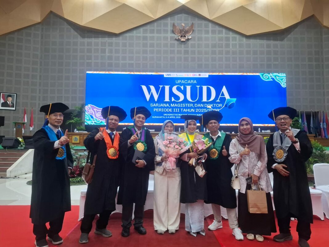 SOLO, MENARA62.COM – Kepercayaan terhadap kualitas pendidikan Universitas Muhammadiyah Surakarta (UMS) kembali ditegaskan oleh Wakil Rektor IV, Em Sutrisna. Hal ini ia sampaikan saat menghadiri prosesi wisuda putrinya, Nazala Suha Arisna, yang telah menyelesaikan studi di Fakultas Kedokteran UMS.