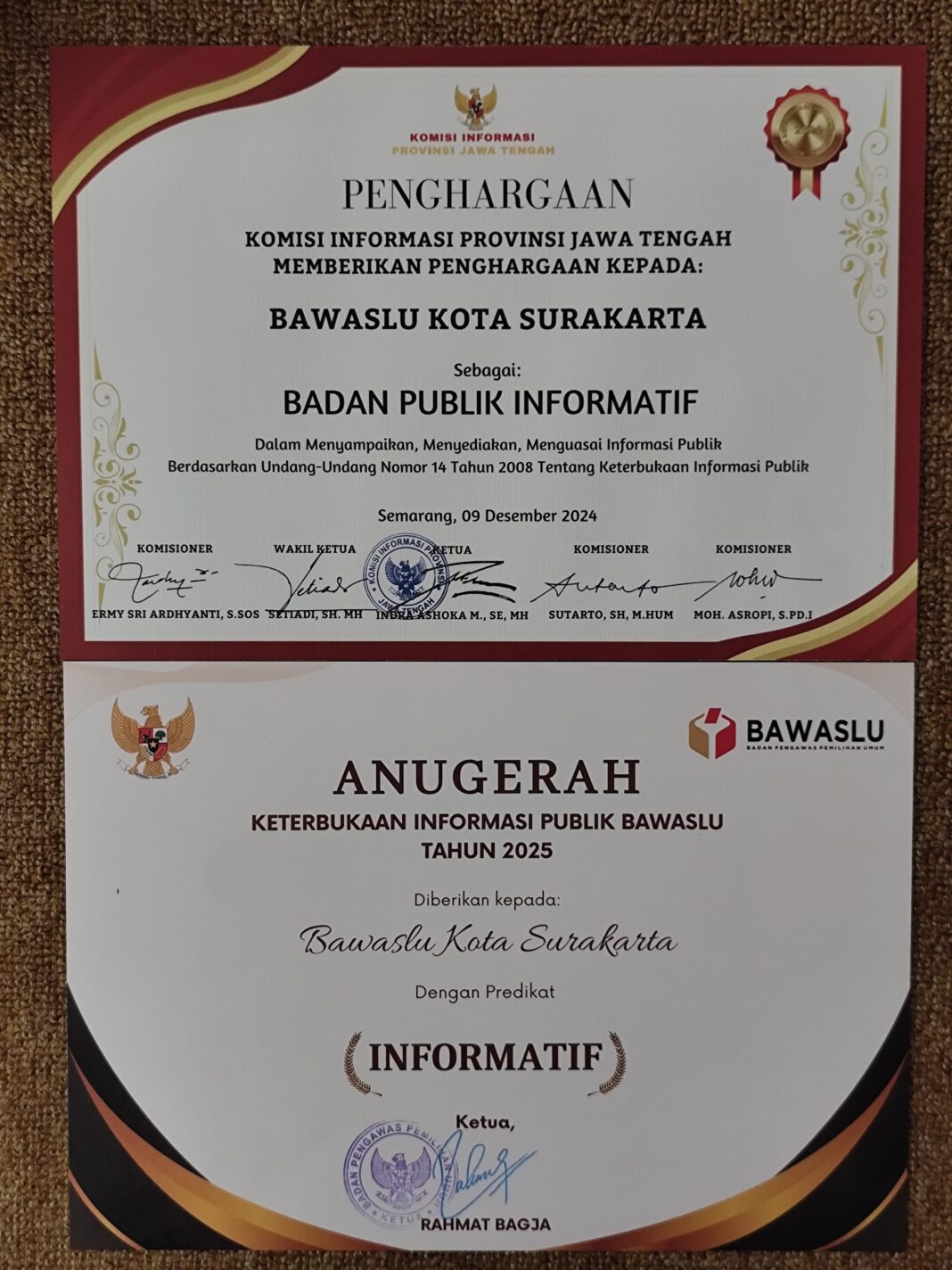 “Penghargaan ini bukan hanya pengakuan, tetapi juga dorongan agar kami semakin memperbaiki tata kelola informasi. Bawaslu Surakarta akan terus memperkuat literasi informasi dan menghadirkan data yang akurat agar masyarakat lebih terlibat dalam pengawasan,” ujarnya.