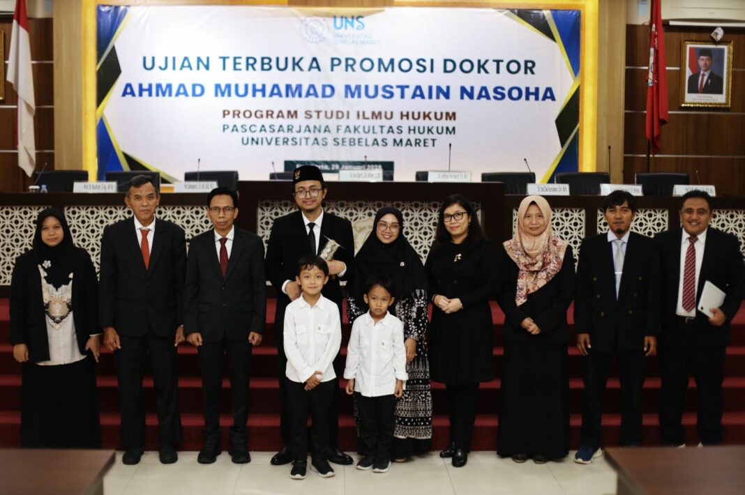 SOLO, MENARA62.COM — Isu perlindungan hak anak pasca perceraian kembali mendapat perhatian serius dari kalangan akademisi hukum Islam. Ahmad Muhamad Mustain Nasoha, yang lebih dikenal sebagai KH. Mustain Nasoha atau Gus Mustain, resmi meraih gelar Doktor Ilmu Hukum (S3) dari Universitas Sebelas Maret (UNS) Surakarta pada usia 33 tahun. Ketua Fatwa MUI Surakarta ini lulus dengan predikat pujian (summa cum laude), sekaligus tercatat sebagai Doktor ke-308 Fakultas Hukum UNS dan Doktor ke-1.266 UNS.