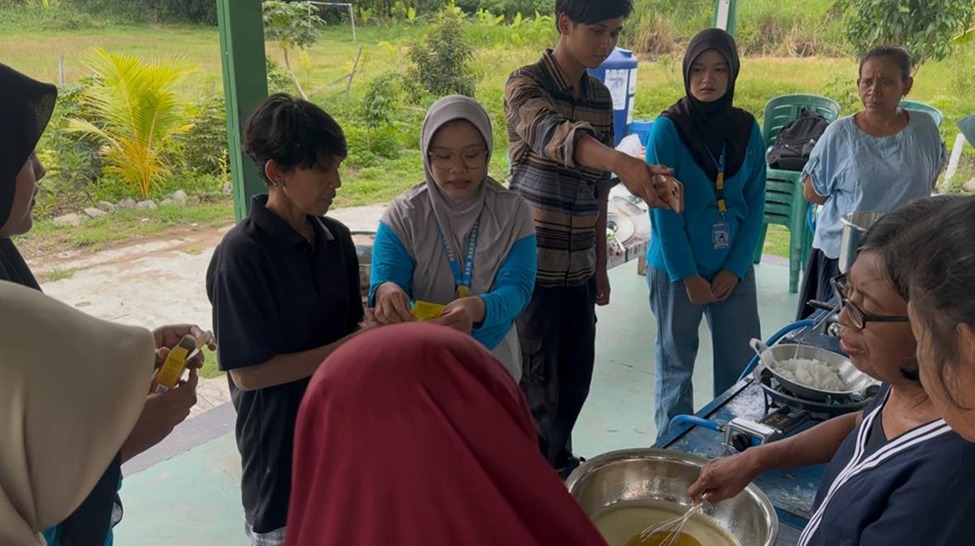 Pelatihan pembuatan Apem Mokaf diikuti warga Usaha Mikro, Kecil, dan Menengah (UMKM) “Sewu Rasa” dan pemuda Karang Taruna. Mereka mendapat penjelasan tentang komposisi gizi, sanitasi produksi, teknik pengolahan aman, hingga cara menjaga kualitas produk agar tahan lebih lama.