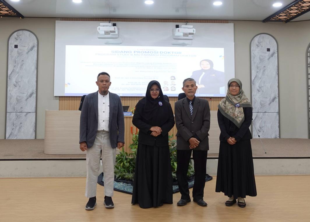 Pada sidang tersebut, Rafiastiana mempertahankan disertasi berjudul “Aktivitas Sediaan Nanoenkapsulasi Poliherbal (Nigella sativa, Centella asiatica, dan Moringa oleifera) sebagai Agen Imunomodulator Kardia-Neuroprotektor Melalui Penghambatan Angiotensin Converting Enzyme pada Model Diabetes: Kajian in Silico, In Vitro dan In Vivo” di bawah bimbingan Prof. Dr. dr. Akrom, M.Kes dan Dr. apt. Arif Budi Setianto, M.Si.