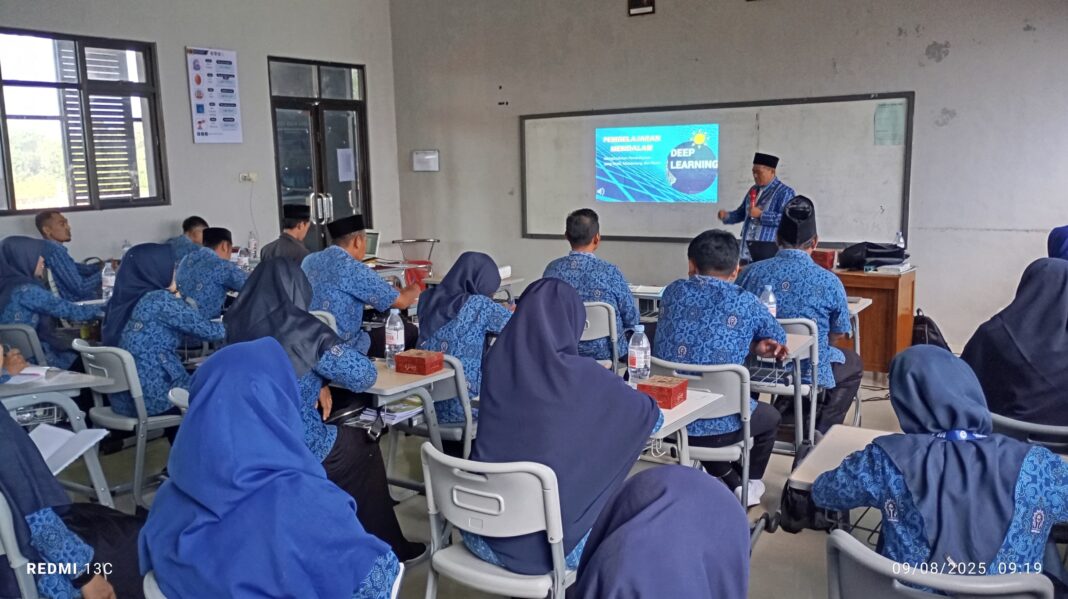 Dalam sesi materi Deep Learning, hadir Dr. Pardiman, Nurrdin, dan Arif Ihsanudin yang memaparkan penerapan pendekatan pembelajaran mendalam untuk meningkatkan daya kritis, kreativitas, dan kemandirian peserta didik.