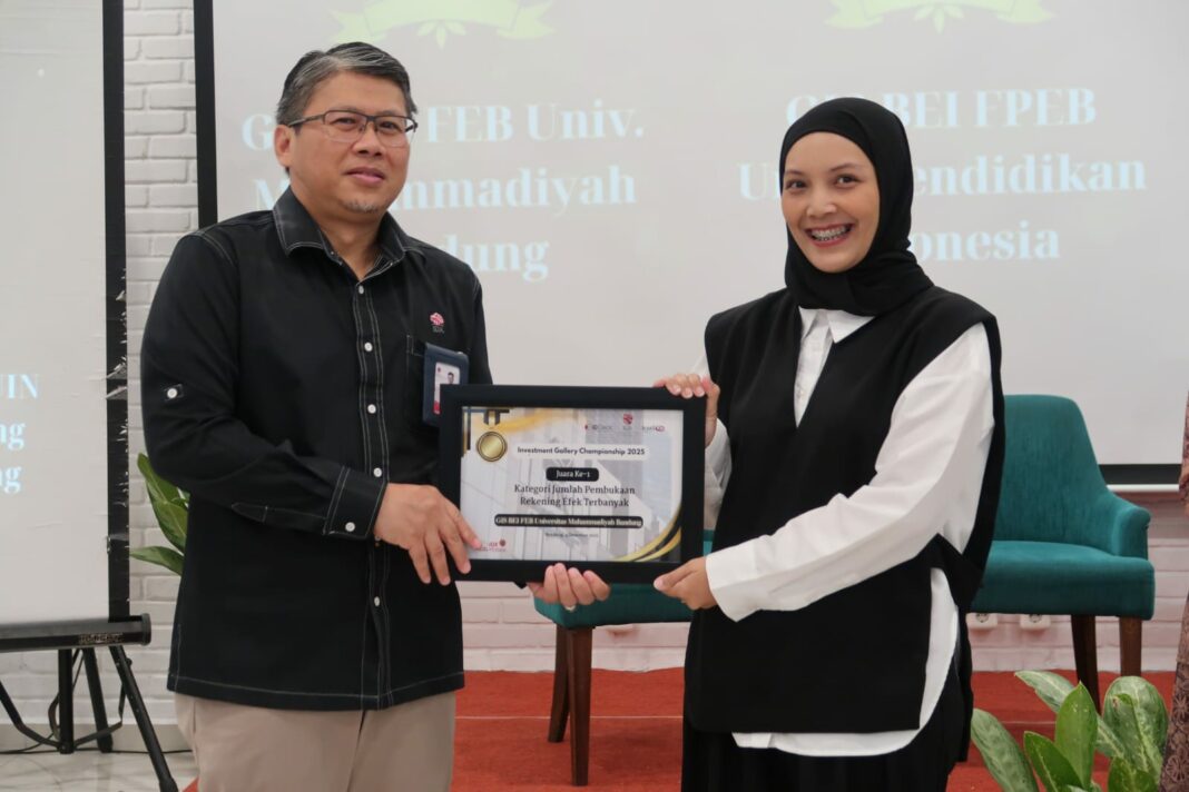 BANDUNG, MENARA62.COM — Galeri Investasi Syariah (GIS) Fakultas Ekonomi dan Bisnis Universitas Muhammadiyah (UM) Bandung kembali menorehkan prestasi membanggakan dengan meraih juara satu kategori jumlah pembukaan rekening efek terbanyak se-Jawa Barat dalam ajang Investment Gallery Championship (IGC) 2025 yang digelar oleh Bursa Efek Indonesia (BEI) Kantor Perwakilan Jawa Barat.