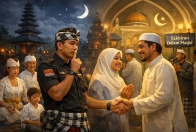 DENPASAR, MENARA62.COM. Nyepi adalah hari raya suci bagi umat Hindu di Bali, yang jatuh pada 19 Maret 2026, yang juga bertepatan dengan malam takbiran Idul Fitri 1447 H. khusus bagi warga Muhammadiyah yang berlebaran 20 maret 2026. Dengan jatuhnya Takbiran yang bertepatan dengan malam Nyepi, diwajibkan kita semua menjaga kesakralan Nyepi dan toleransi antaragama, walaupun Kementerian Agama telah mengeluarkan panduan khusus untuk pelaksanaan takbiran di Bali.
