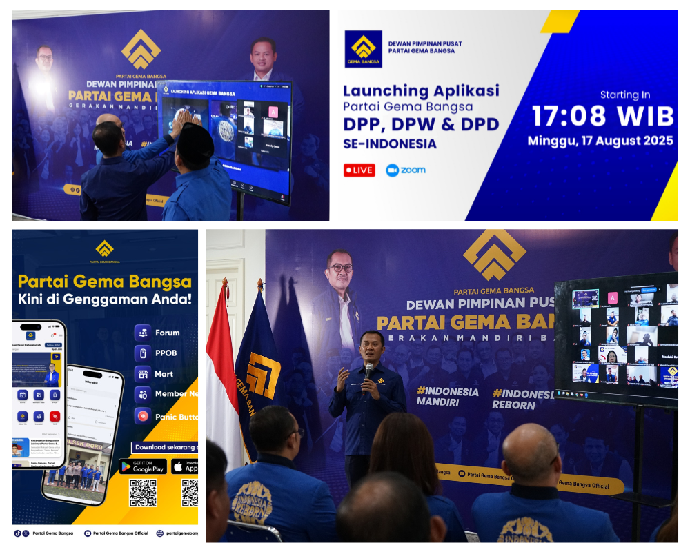 MENARA62.COM-Hari kemerdekaan Indonesia yang ke 80 tahun, Partai Gema Bangsa menghadiahkan kado istimewa dengan melakukan Launching Aplikasi Gema Bangsa, yang merupakan bagian terpenting dalam mewujudkan partai Modern sesuai dengan kebutuhan zaman kedepan, hari minggu, (17/08/2025)