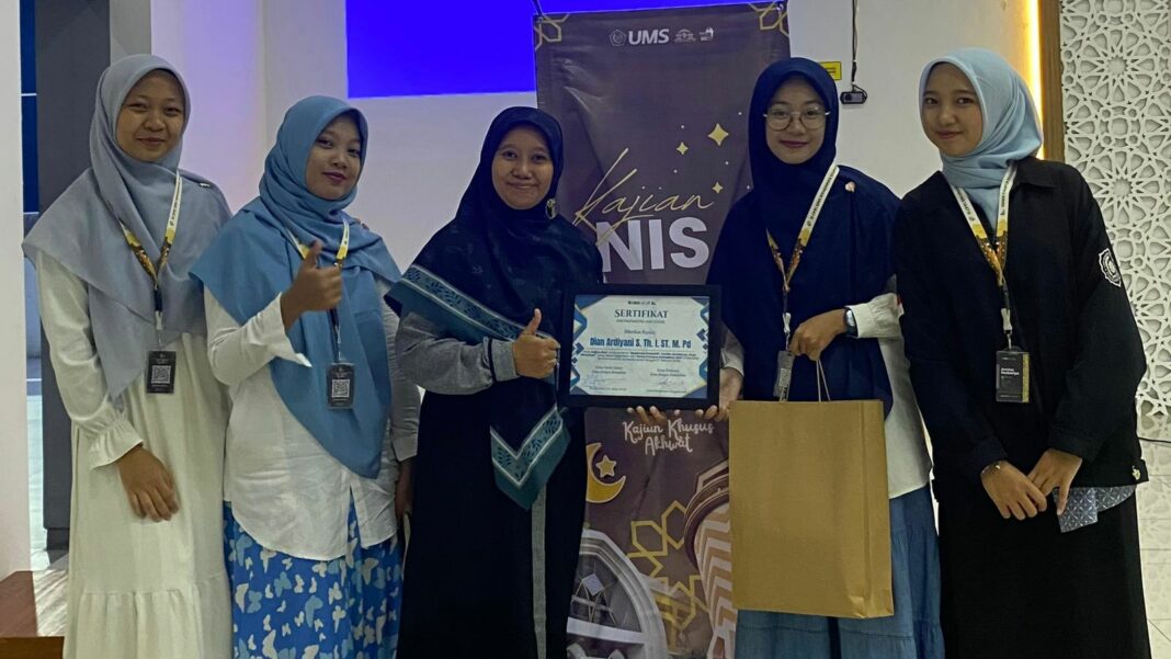 SOLO, MENARA62.COM – Gema Kampus Ramadan (GKR) 1447 H Universitas Muhammadiyah Surakarta menggelar Kajian Nisa bertajuk “Muslimah Produktif: Cantik Akhlaknya, Kuat Mimpinya” pada hari Jum’at (27/2) di Masjid Fadhlurrahman, Kampus 1 UMS. Kegiatan ini merupakan upaya penguatan spiritual dan pengembangan karakter muslimah.