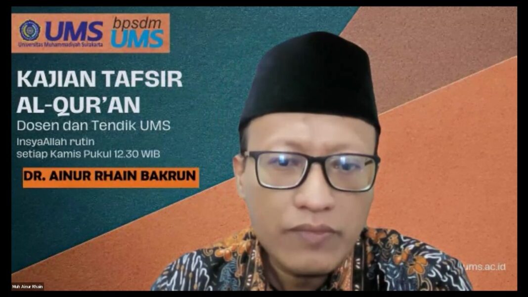 SOLO, MENARA62.COM – Universitas Muhammadiyah Surakarta (UMS) menyelenggarakan Kajian Tafsir Online ke-68 yang menghadirkan pemateri Dr. Ainur Rha’in, S.Th.I., M.Th. (31/10). Pada kesempatan ini, ia mengupas Surah Al-Baqarah ayat 11–20 dengan penekanan pada karakter dan perilaku kaum munafik.