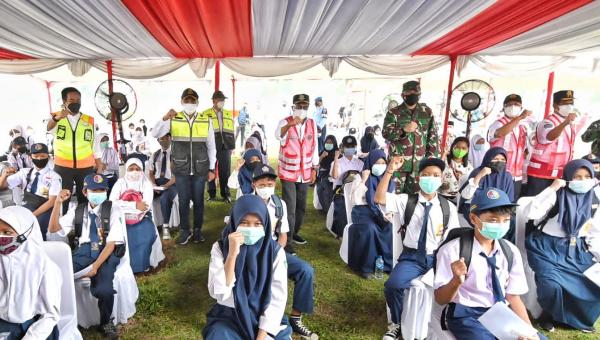 Menhub mengatakan, kedepannya, pelaksanaan serbuan vaksinasi massal akan dilakukan di lebih 30 lokasi sekolah di luar Pulau Jawa.