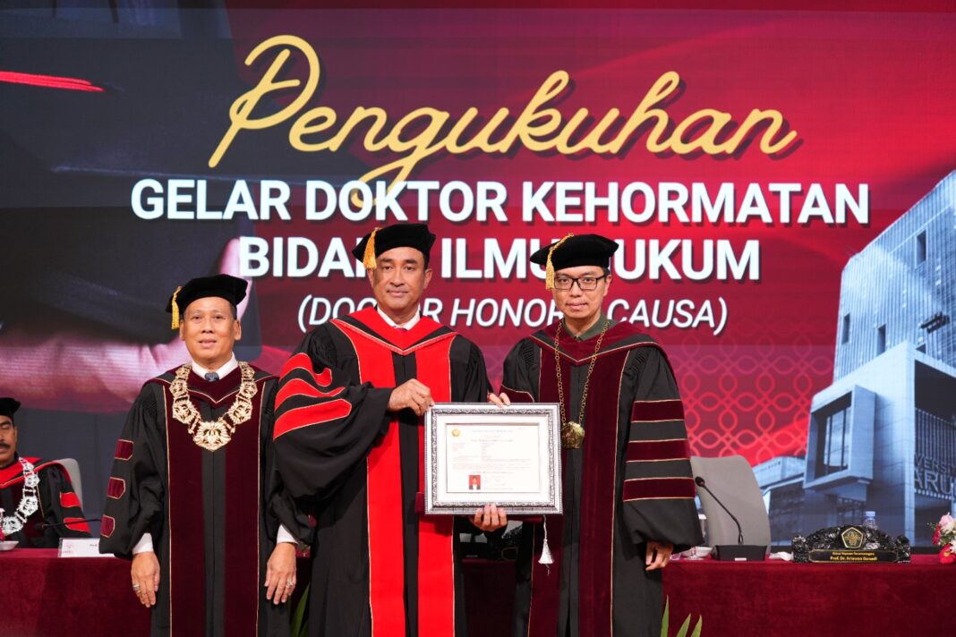 JAKARTA, MENARA62.COM — Sidang Terbuka Senat Untar menganugerahkan gelar Doktor Honoris Causa bidang Ilmu Hukum kepada Kepala Badan Narkotika Nasional (BNN), Komisaris Jenderal (Komjen) Polisi Suyudi Ario Seto. Prosesi penganugerahan gelar dilaksanakan Sabtu (31/01/2026) di Auditorium Kampus I Untar, Jakarta.