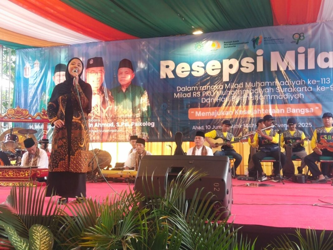 SOLO, MENARA62.COM – Resepsi Milad Muhammadiyah ke-113 dan Milad RS PKU Muhammadiyah Surakarta ke-98 berlangsung meriah di Halaman Parkir RS PKU Muhammadiyah Surakarta, Ahad (30/11/2025). Salah satu penampilan yang mencuri perhatian jamaah ialah suguhan keroncong dari LSBO dan Majelis Pendidikan PDM Kota Surakarta.