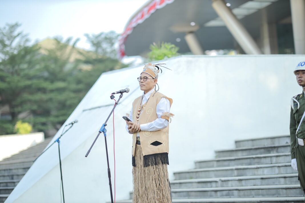 Salah satu yang menarik perhatian adalah para peserta upacara yang mengenakan berbagai baju adat daerah dari seluruh Indonesia. Rektor UMS, Prof. Dr. Harun Joko Prayitno, tampil mengenakan baju adat Papua sebagai wujud penghargaan atas keberagaman budaya bangsa. Kehadiran baju adat dalam upacara tersebut meneguhkan semangat “Bersatu dalam Kebhinekaan,” ujar Rektor UMS.
