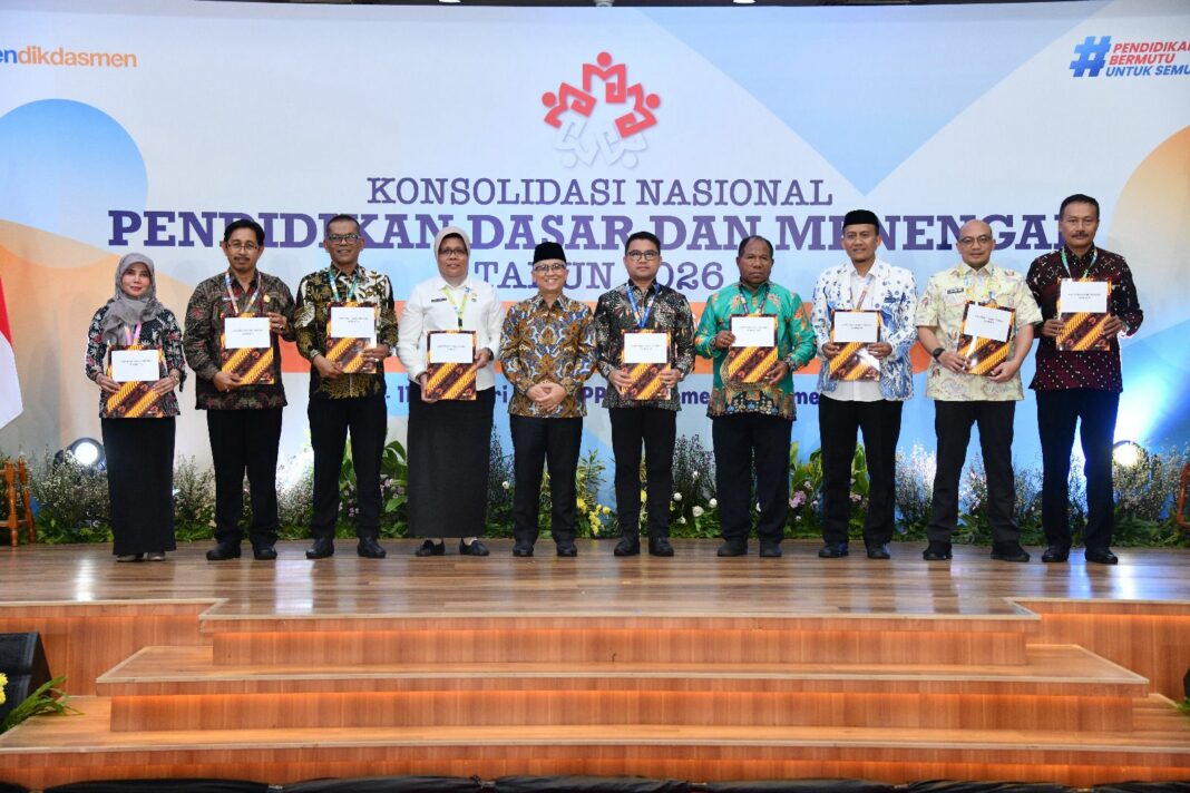 DEPOK, MENARA62.COM – Kementerian Pendidikan Dasar dan Menengah (Kemendikdasmen) secara resmi menutup rangkaian Konsolidasi Nasional Pendidikan Dasar dan Menengah (Konsolnas) Tahun 2026 yang berlangsung selama tiga hari di Depok, Jawa Barat, Rabu (11/2/2026). Pada penutupan kegiatan, Wakil Menteri Pendidikan Dasar dan Menengah (Wamendikdasmen), Atip Latipulhayat, menerima hasil rekomendasi dari sembilan komisi sebagai rumusan bersama arah penguatan kebijakan pendidikan ke depan.
