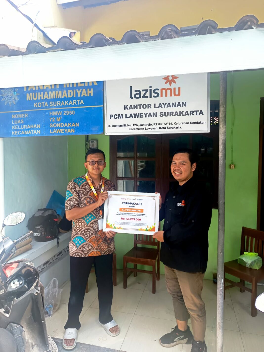 SOLO, MENARA62.COM — Lazismu Kantor Layanan Pimpinan Cabang Muhammadiyah (PCM) Laweyan kembali menunjukkan komitmennya dalam aksi kemanusiaan dengan menyalurkan donasi Peduli Bencana Sumatera dan Aceh sebesar Rp 43.253.000. Donasi tersebut disalurkan melalui Lazismu Kota Surakarta sebagai lembaga resmi yang memiliki jaringan nasional dalam penanganan kebencanaan.