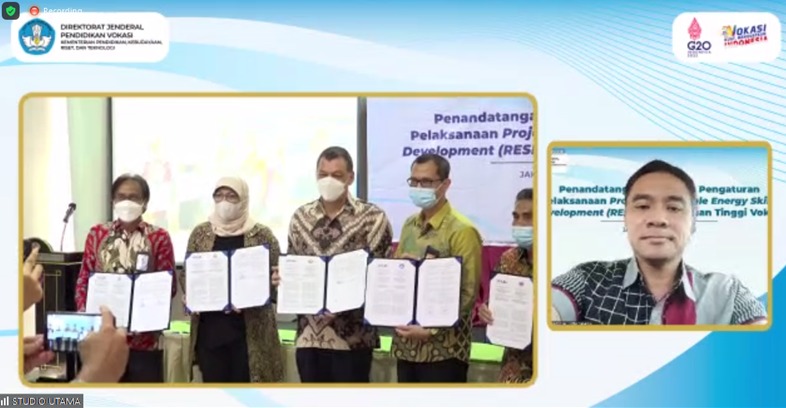 JAKARTA, MENARA62.COM – Kementerian Pendidikan, Kebudayaan, Riset, dan Teknologi (Kemendikbudristek) melakukan penandatanganan naskah pengaturan pelaksanaan program Renewable Energy Skills Development (RESD), yang dilaksanakan oleh The Swiss State Secretariat for Economic Affairs (SECO) melalui GFA Consulting Group dan Kementerian Energi dan Sumber Daya Mineral (ESDM). Kolaborasi antara pendidikan tinggi vokasi baik dengan perguruan tinggi, industri, kementerian/lembaga maupun nonkementerian/lembaga ini, diharapkan dapat melahirkan berbagai inovasi yang menjadi solusi alternatif bagi kebutuhan energi di masa yang akan datang.