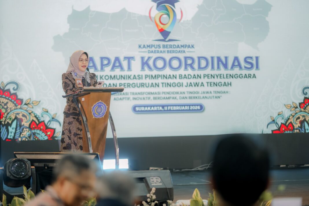 SOLO, MENARA62.COM – Kepala Lembaga Layanan Pendidikan Tinggi (LLDIKTI) Wilayah VI Jawa Tengah, Prof. Dr. Ir. Aisyah Endah Palupi, M.Pd., secara resmi membuka Rapat Koordinasi bertajuk : “Akselerasi Transformasi Pendidikan Tinggi Jawa Tengah: Adaptif, Inovatif, Berdampak, dan Berkelanjutan. Kegiatan tersebut menjadi ruang strategis”, konsolidasi antara LLDIKTI VI, pimpinan perguruan tinggi swasta (PTS), serta badan penyelenggara untuk memperkuat arah transformasi pendidikan tinggi di Jawa Tengah.