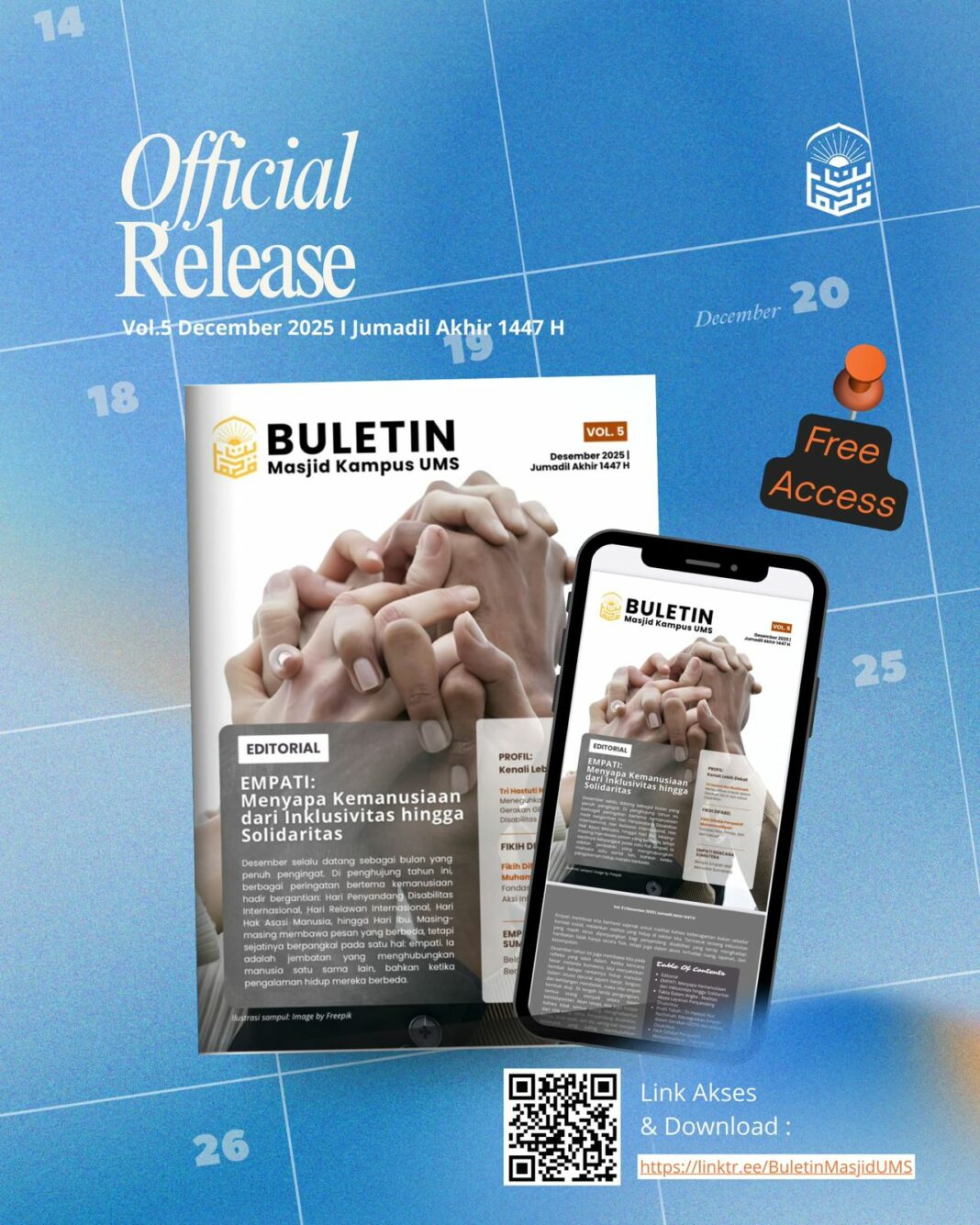 Buletin ke-5 ini menjadi bagian dari upaya Masjid Kampus UMS dalam menghadirkan media literasi dan dakwah yang responsif terhadap realitas sosial serta nilai-nilai kemanusiaan.