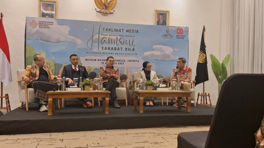 Hadir dalam Taklimat Media Wamen Kebudayaan Giring Ganesha, Dirjen Pengembangan Pemanfaatan dan Pembinaan Kebudayaan Ahmad Mahendra, dan penyanyi cilik legendaris Chichaa Koeswoyo.