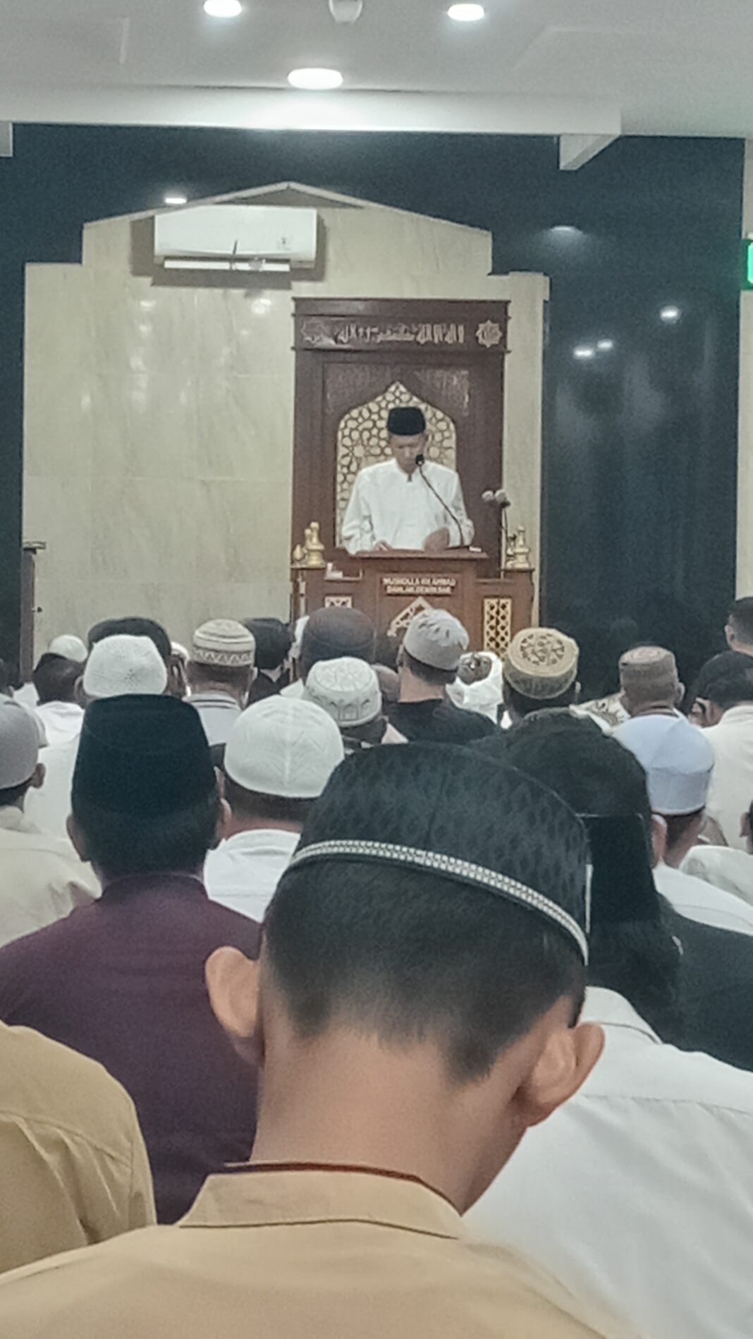 Bertindak sebagai khotib, Ustadz Drs. M. Barhiman menyampaikan pesan-pesan keislaman yang menekankan pentingnya menjaga keikhlasan, memperkuat ukhuwah, serta mengimplementasikan nilai-nilai Ramadhan dalam kehidupan sehari-hari.
