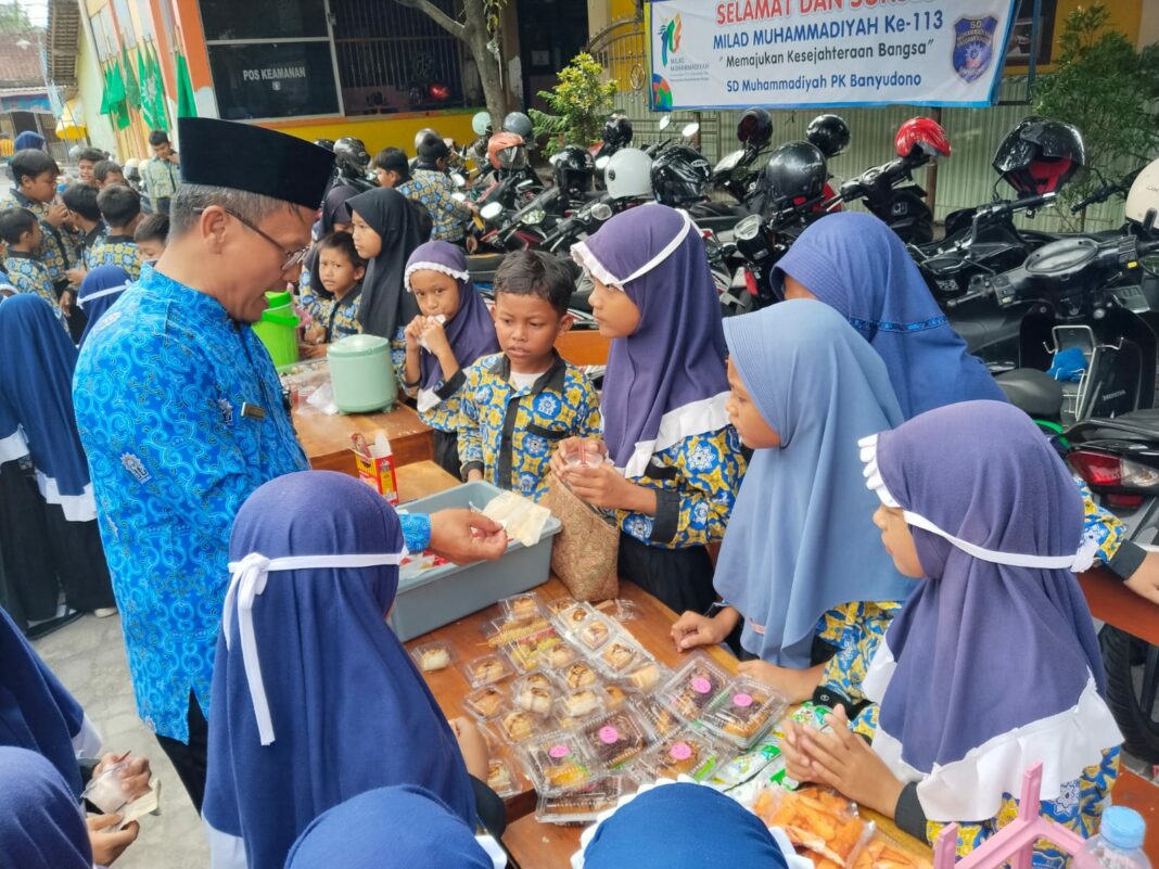 BOYOLALI, MENARA62.COM – SD Muhammadiyah PK Banyudono kembali menggelar kegiatan rutin Pasar Bocah di halaman sekolah pada Selasa (9/12/2025). Agenda tahunan yang selalu ditunggu siswa ini diikuti oleh 550 murid sebagai bagian dari program pembelajaran kemandirian dan penguatan karakter saudagar muslim sejak usia dini.