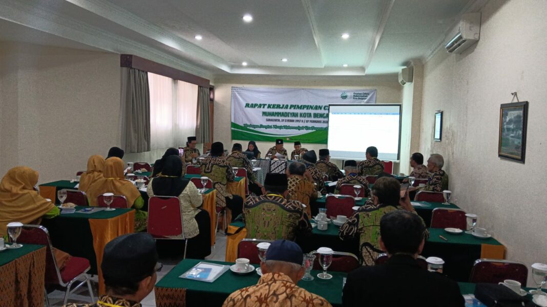 SOLO, MENARA62.COM — Pimpinan Cabang Muhammadiyah (PCM) Kota Bengawan menggelar Rapat Kerja Pimpinan Cabang (Rakerpimcab) III pada Sabtu (7/2/2026) di Griyadi Kusuma by Sahid, Kampung Baru, Kecamatan Pasarkliwon, Surakarta. Kegiatan ini diikuti 37 peserta yang terdiri atas jajaran PCM Kota Bengawan, Pimpinan Cabang Aisyiyah (PCA) Kota Bengawan, serta organisasi otonom (ortom) tingkat cabang.