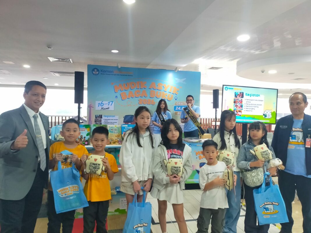 JAKARTA, MENARA62.COM – Dalam rangka meningkatkan minat baca anak-anak Indonesia, Kementerian Pendidikan Dasar dan Menengah melalui Badan Pengembangan dan Pembinaan Bahasa menggelar kegiatan pembagian buku gratis bagi anak-anak yang melakukan perjalanan mudik. Salah satu lokasi pembagian buku gratis tersebut adalah Bandara Halim Perdanakusuma, Jakarta Timur.