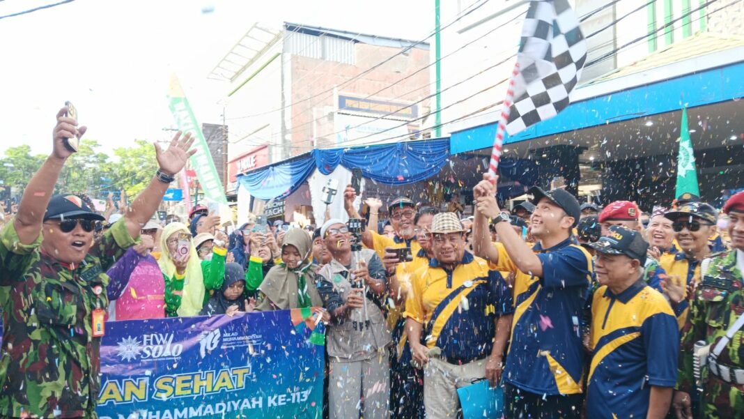 SOLO, MENARA62.COM – Sekitar 4000 warga Muhammadiyah se-Surakarta tumpah ruah mengikuti jalan sehat dalam rangka menyambut Milad Muhammadiyah ke-113, Ahad (23/11). Kegiatan ini berlangsung meriah dengan titik start dari Balai Muhammadiyah Surakarta, dan dilepas secara resmi oleh Wali Kota Surakarta, Respati Ardi.