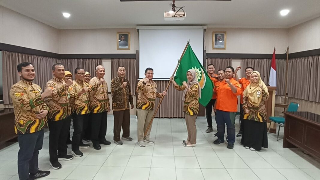 Prosesi pelepasan ditandai dengan penyerahan bendera RS PKU Muhammadiyah Surakarta kepada perwakilan Tim EMT, dr. Hafizha Firdaus Al Fuady, sebagai simbol amanah dan identitas selama bertugas di wilayah bencana.