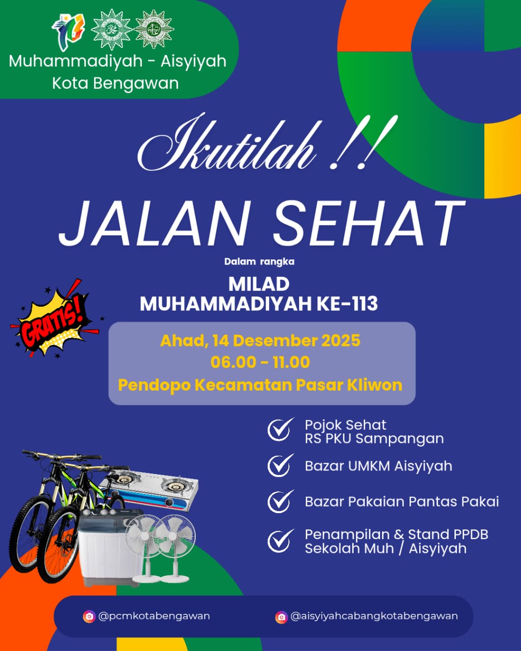Mari sukseskan Jalan Sehat Milad Muhammadiyah ke-113 dan wujudkan masyarakat sehat, bugar, serta penuh kebersamaan! (*)