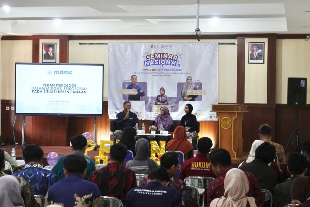 MAGELANG, MENARA62.COM – Himpunan Mahasiswa Psikologi (HIMAPSI) Fakultas Psikologi dan Humaniora (FPH) Universitas Muhammadiyah Magelang (UNIMMA) menggelar Seminar Nasional dalam rangkaian Pekan Psikologi 2026. Dengan tema “Sinergi Psikologi dalam Mitigasi Psikososial dan Strategi Pemulihan Trauma Pasca Bencana”, kegiatan dilaksanakan di Aula Fakultas Ilmu Kesehatan (Fikes) Kampus 2 UNIMMA pada Selasa (21/4).