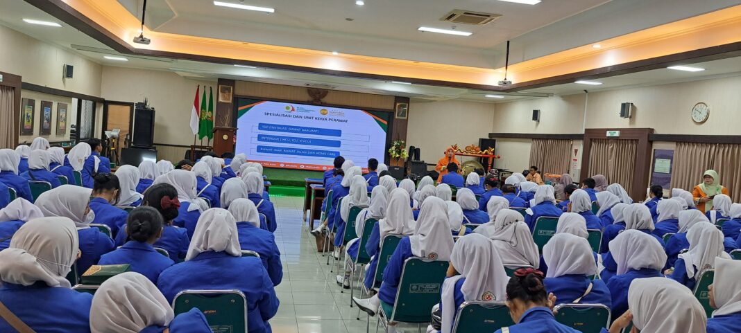 SOLO, MENARA62.COM– Bertempat di Aula Baitul Hikmah, sebanyak 122 siswa kelas XI dari Program Keahlian Layanan Kesehatan dan Program Keahlian Teknologi Farmasi SMK Kesehatan Binatama Yogyakarta, didampingi 13 guru, melakukan kunjungan industri kesehatan ke RS PKU Muhammadiyah Surakarta, Selasa (12/8).