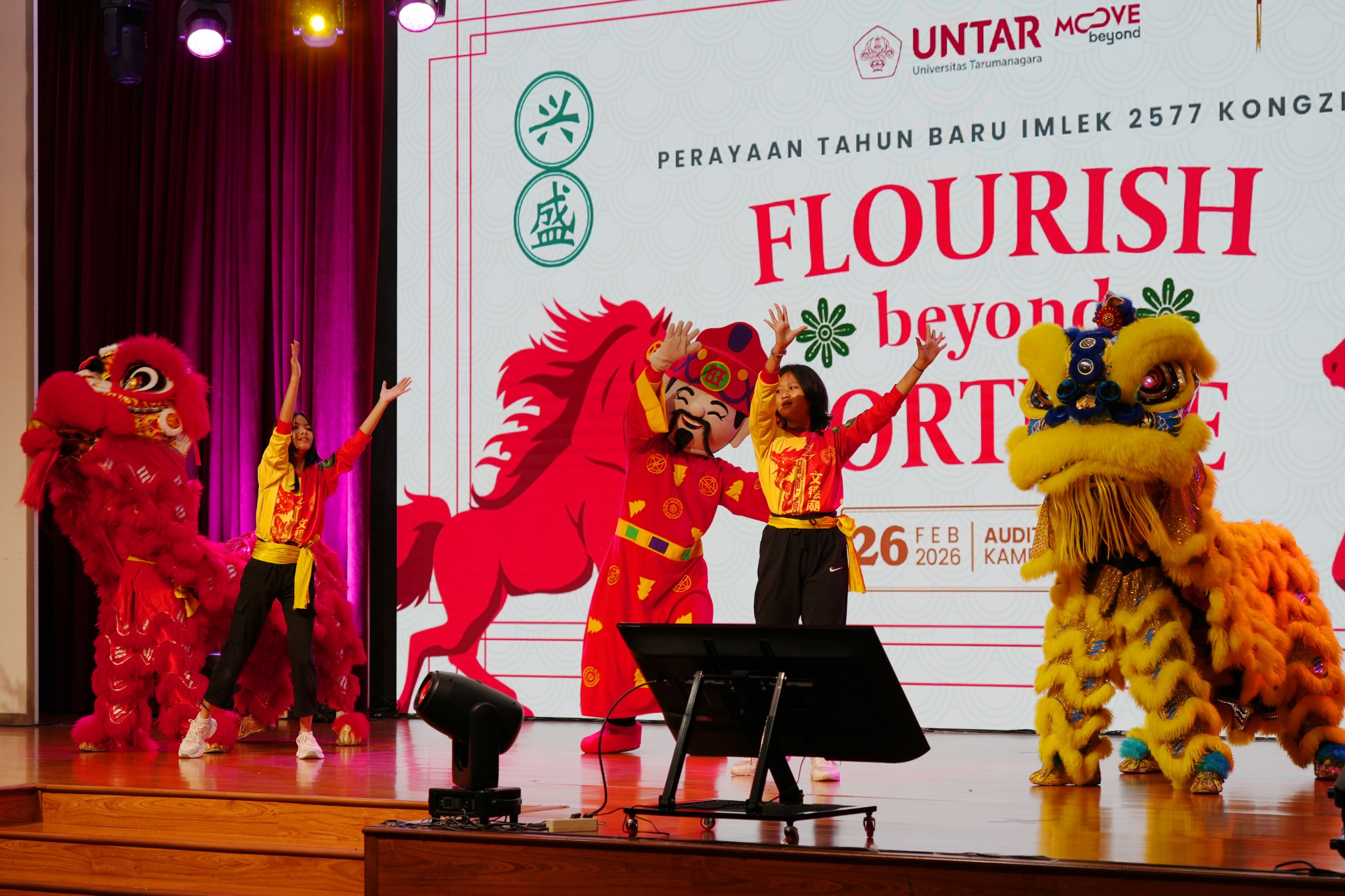 Perayaan Imlek Untar 2026 mengusung tema “Flourish Beyond Fortune”, perayaan ini menjadi tradisi kampus sekaligus ruang kebersamaan sivitas akademika dari berbagai latar belakang budaya, suku, dan agama. Tema tersebut dimaknai sebagai ajakan untuk bertumbuh melampaui sekadar keberuntungan. “Tahun baru ini tidak hanya menerima ‘Fortune’, tetapi juga kebijaksanaan untuk mengolahnya, kerendahan hati untuk mensyukurinya, dan keberanian untuk memberinya,” kata Rektor.