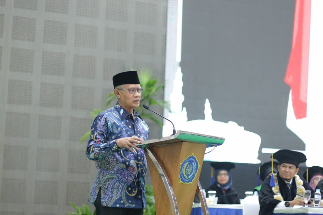 SOLO, MENARA62.COM – Universitas Muhammadiyah Surakarta (UMS) menggelar peringatan Hari Jadi ke-67 di Gedung Edutorium KH. Ahmad Dahlan UMS, Jumat (24/10). Acara ini dihadiri oleh Ketua Umum Pimpinan Pusat Muhammadiyah, Prof. Dr. Haedar Nashir, M.Si., Wakil Menteri Pendidikan Dasar dan Menengah, Dr. Fajar Riza Ul Haq, serta Kepala LLDIKTI Wilayah VI, Prof. Dr. Ir. Aisyah Endah Palupi, M.Pd., beserta tamu undangan dan keluarga besar UMS.