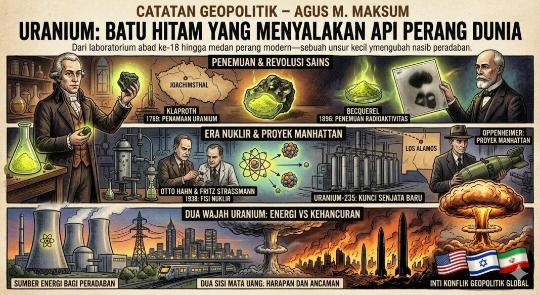 Dalam catatan saya, uranium adalah salah satu materi yang paling sering disebut ketika dunia berada di ambang konflik besar. Ia muncul dalam percakapan tentang teknologi militer pada masa Perang Dunia I, menjadi inti dari perlombaan sains dan senjata dalam Perang Dunia II, dan kini kembali menjadi kata kunci dalam ketegangan geopolitik global yang oleh banyak pengamat disebut sebagai bayang-bayang Perang Dunia III.