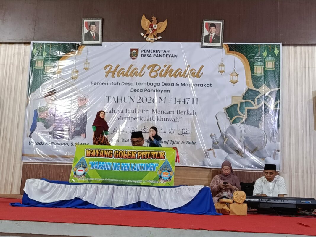 BOYOLALI, MENARA62.COM — Pemerintah Desa Pandeyan, Kecamatan Ngemplak, Kabupaten Boyolali, menggelar Halal Bihalal dengan konsep unik melalui pagelaran wayang dakwah Wayang Golek Pitutur. Kegiatan yang berlangsung di Aula Balaidesa Pandeyan ini menjadi momentum mempererat ukhuwah sekaligus menyampaikan pesan keagamaan secara kultural kepada masyarakat.