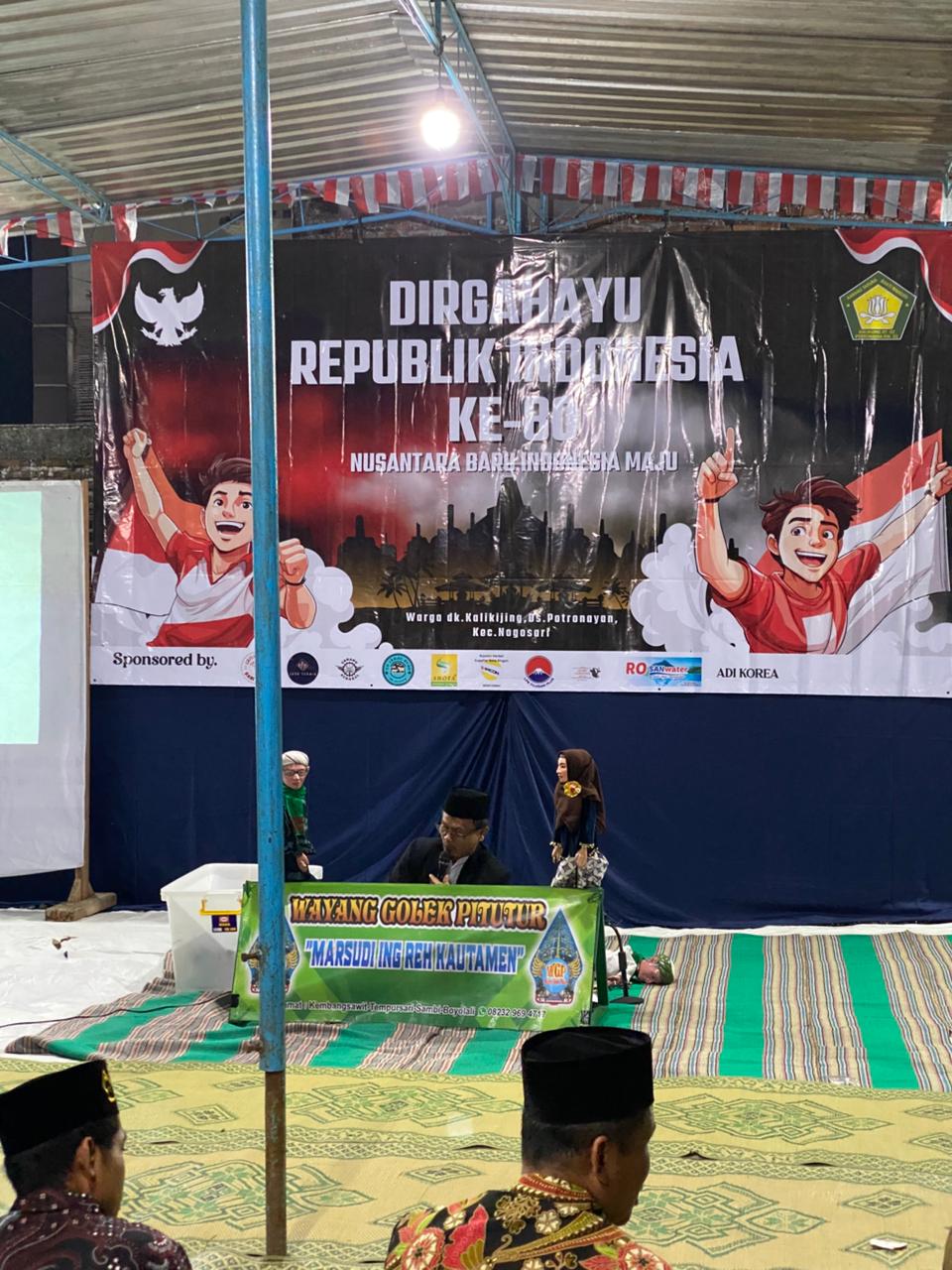 BOYOLALI, MENARA62.COM– Dalam rangka menyemarakkan peringatan HUT ke-80 Kemerdekaan Republik Indonesia, warga Kalikijing, Potronayan, Nogosari, Boyolali menggelar pengajian seni Wayang Golek Pitutur pada Sabtu malam, 16 Agustus 2025. Acara berlangsung meriah di halaman warga setempat dengan menghadirkan Ustadz Ki Pujiono, anggota Majelis Tabligh PWM Jawa Tengah, sebagai dalang sekaligus penceramah.