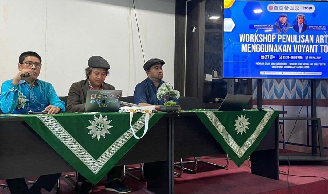 MAKASSAR, MENARA62.COM — Program Studi Ilmu Komunikasi Fakultas Ilmu Sosial dan Ilmu Politik (FISIP) Universitas Muhammadiyah (Unismuh) Makassar terus mendorong peningkatan kualitas riset sivitas akademika. Salah satu upayanya diwujudkan melalui Workshop Penulisan Artikel Ilmiah Berbasis Voyant Tools yang digelar di Mini Hall FISIP, Kamis (27/11/2025). Kegiatan ini menghadirkan pakar komunikasi dari Universitas Muhammadiyah Yogyakarta (UMY), Dr. Fajar Junaedi, dan diikuti para dosen, staf, serta mahasiswa.